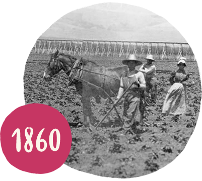 A finales de la década de 1860, James Waters cultiva y vende las primeras fresas comerciales en Pajaro Valley, California.